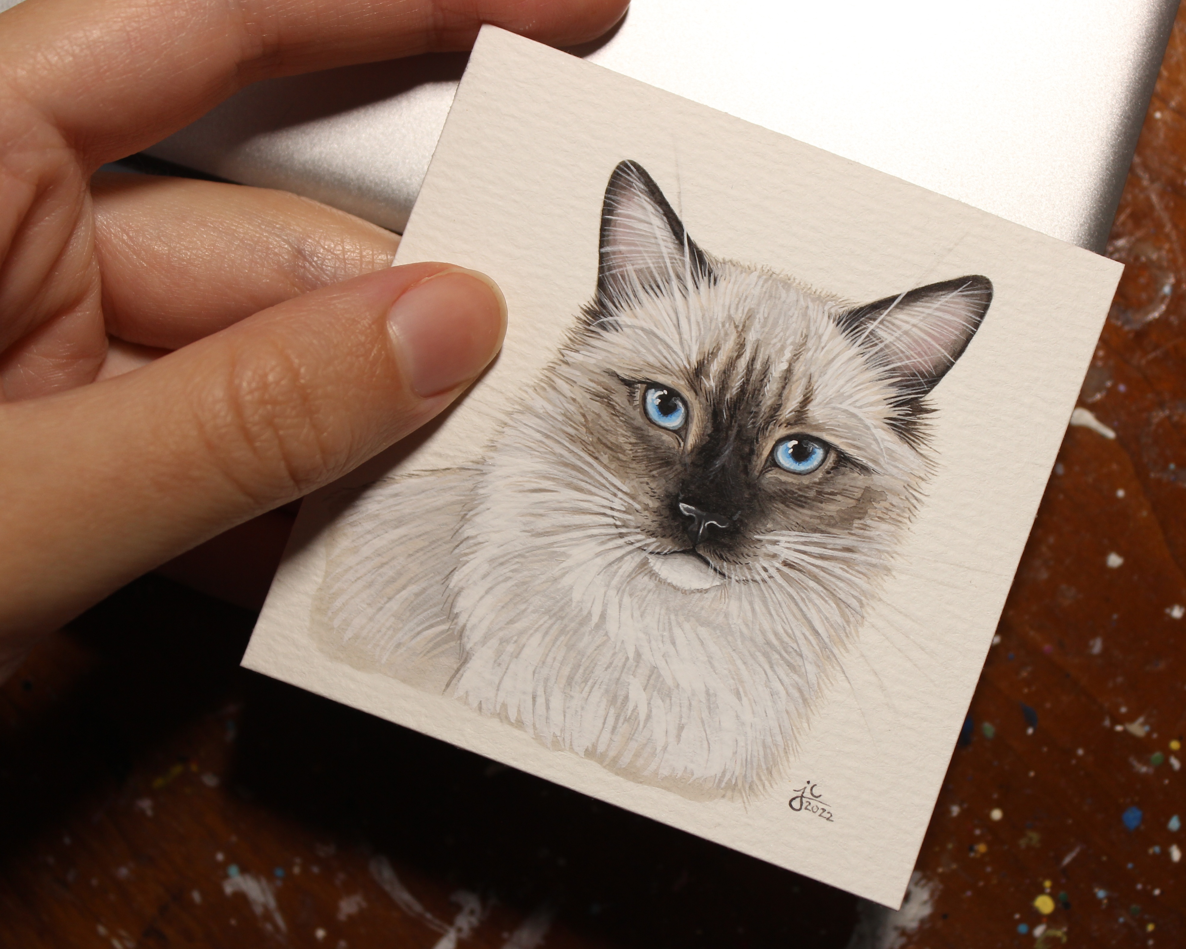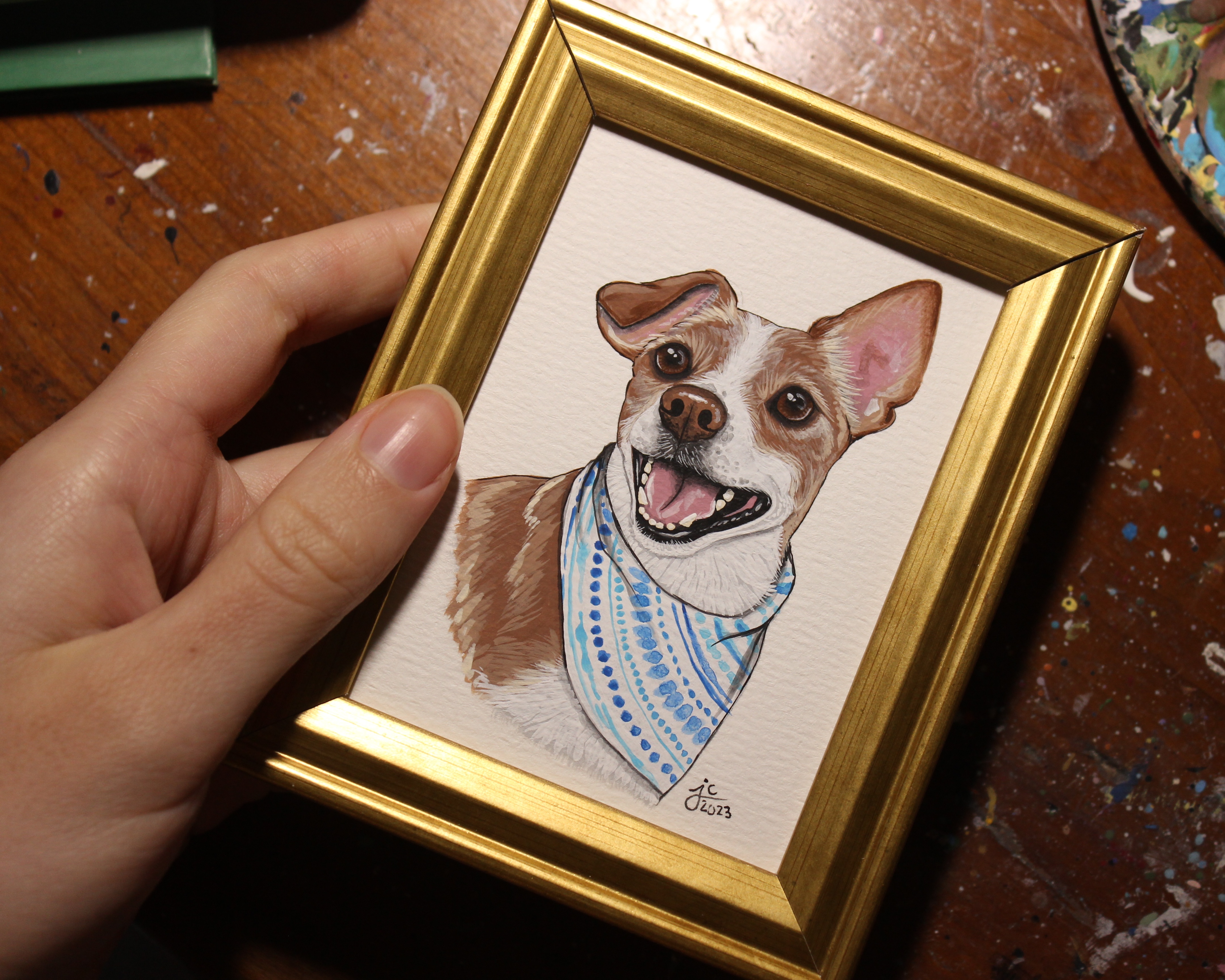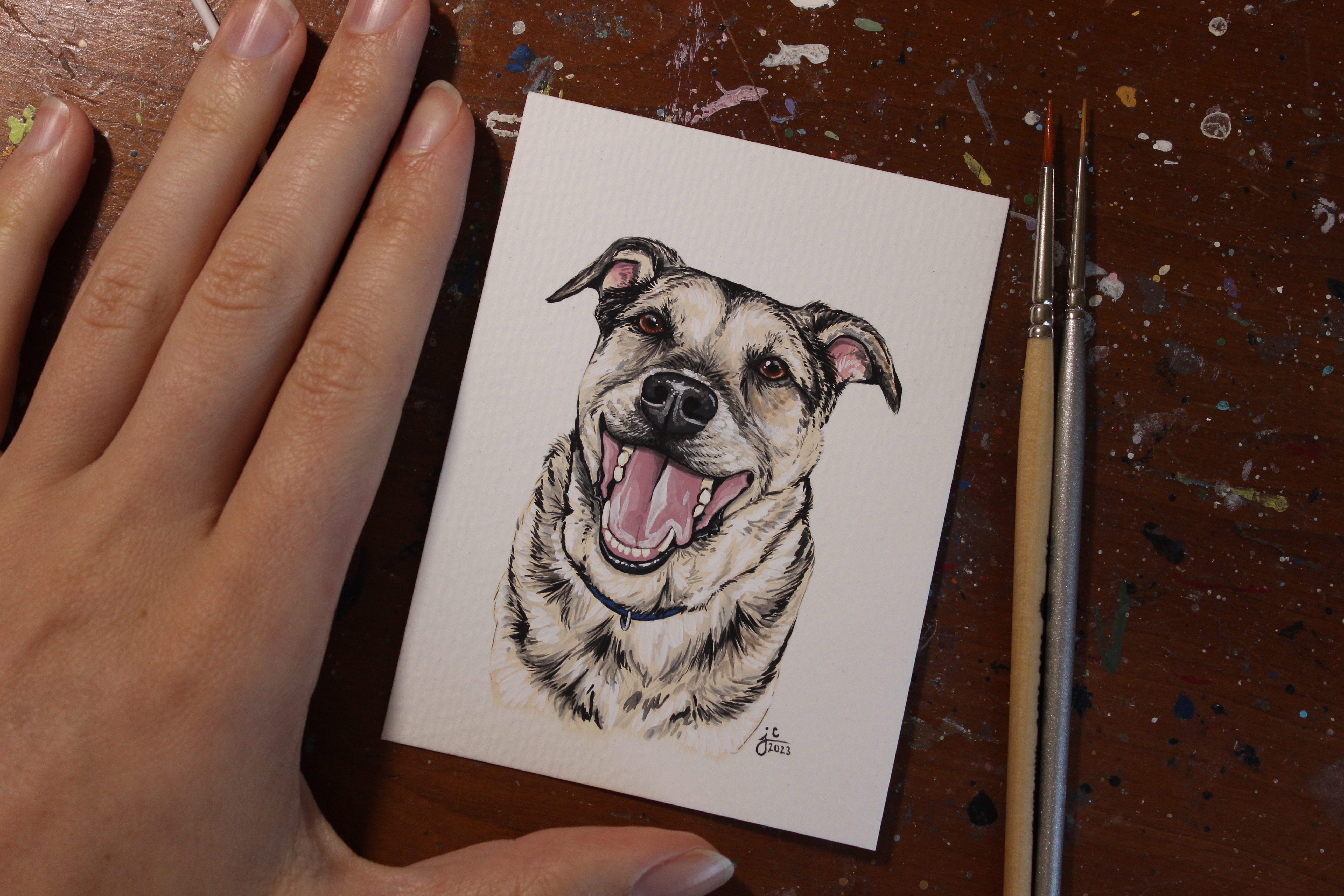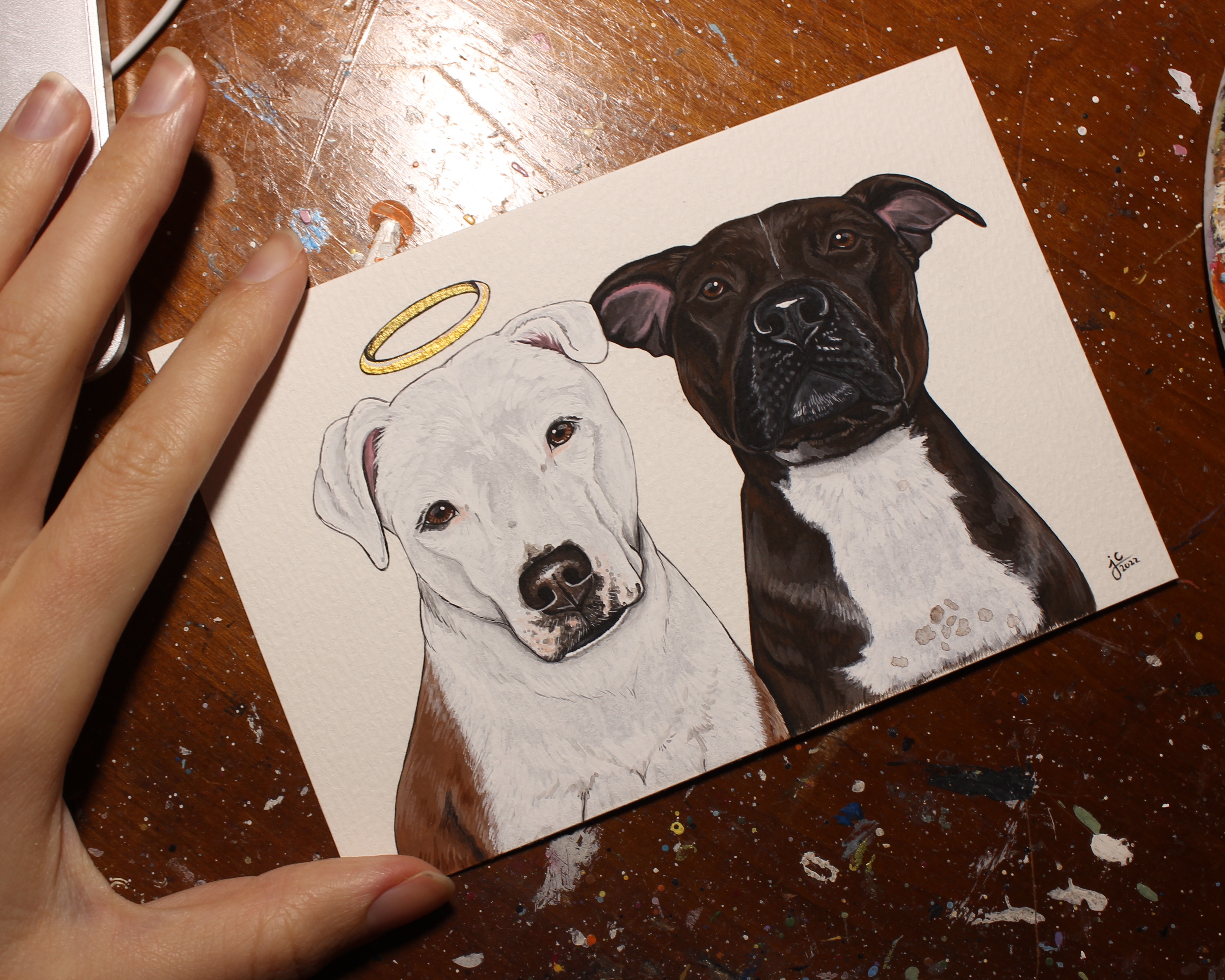 I seem to have gotten into a pretty good work flow recently painting my pet portraits. I’m able to sit down and either finish one portrait per day (if they’re a small size), or one portrait every other day (if they’re a bigger size, or a double portrait).