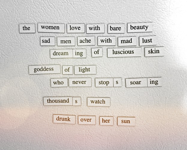 Now Mom thinks that we should compile a book of fridge poetry, though personally I believe that some things should just…stay on the fridge.