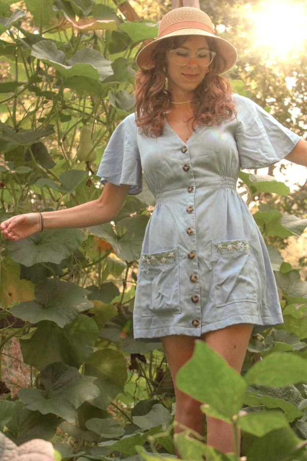 I finished flipping this thrifted dress a few weeks back, but then life got so crazy that I simply did not have the energy to get the photos I wanted of the finished project. Although I did succeed in finally getting out to the garden with my camera last week, life is still crazy, and I definitely haven’t been feeling like my best self lately. Last night I was laying in bed watching a show and I just thought: oh my god, I am not who I want to be at all right now. Physically, mentally, emotionally, spiritually. At the end of most of the recent days I’ve felt like I’ve done nothing but wait for bedtime, just to simply have to start over again the next day. The audacity! It’s exhausting and a little lonely.