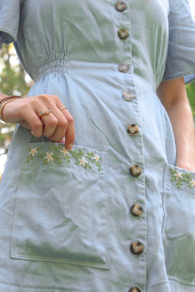 Then I spent an evening watching a cute movie and embroidering little daisies on the top of them, because HOW CUTE. I’m obsessed. I did it super professionally too — making sure to fold down and sew the top of the pocket to completely hide all the back-work of the embroidery. I must say, I’m pretty proud of the outcome.