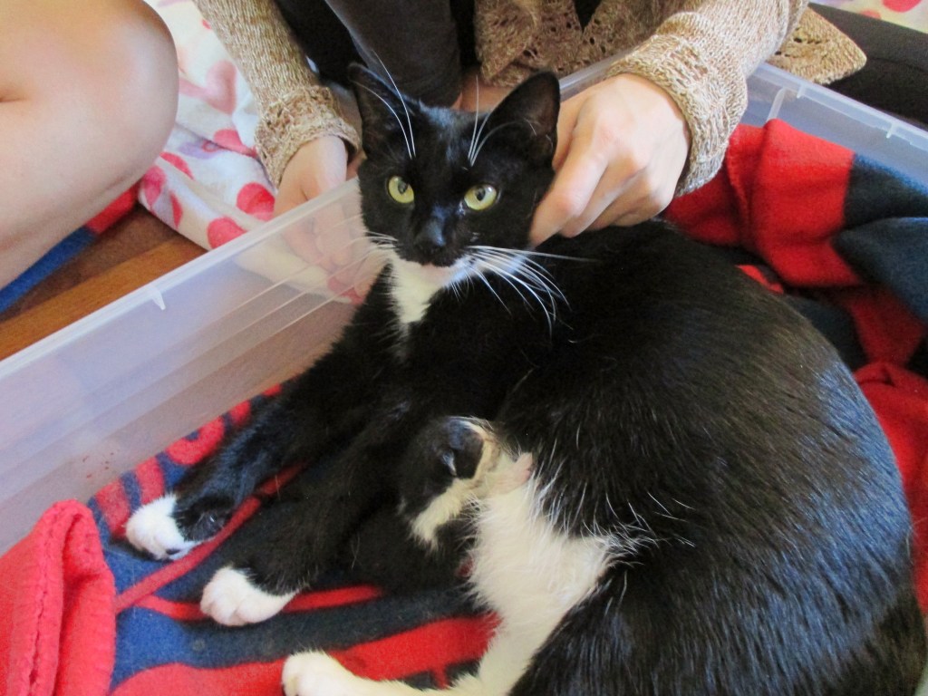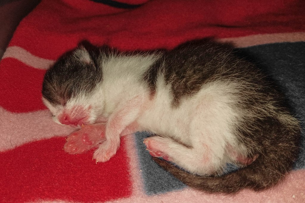 You see, Agnes has given birth. And (drum roll, please), she had two (two) black-and-white kittens inside of her. One of which was stillborn.