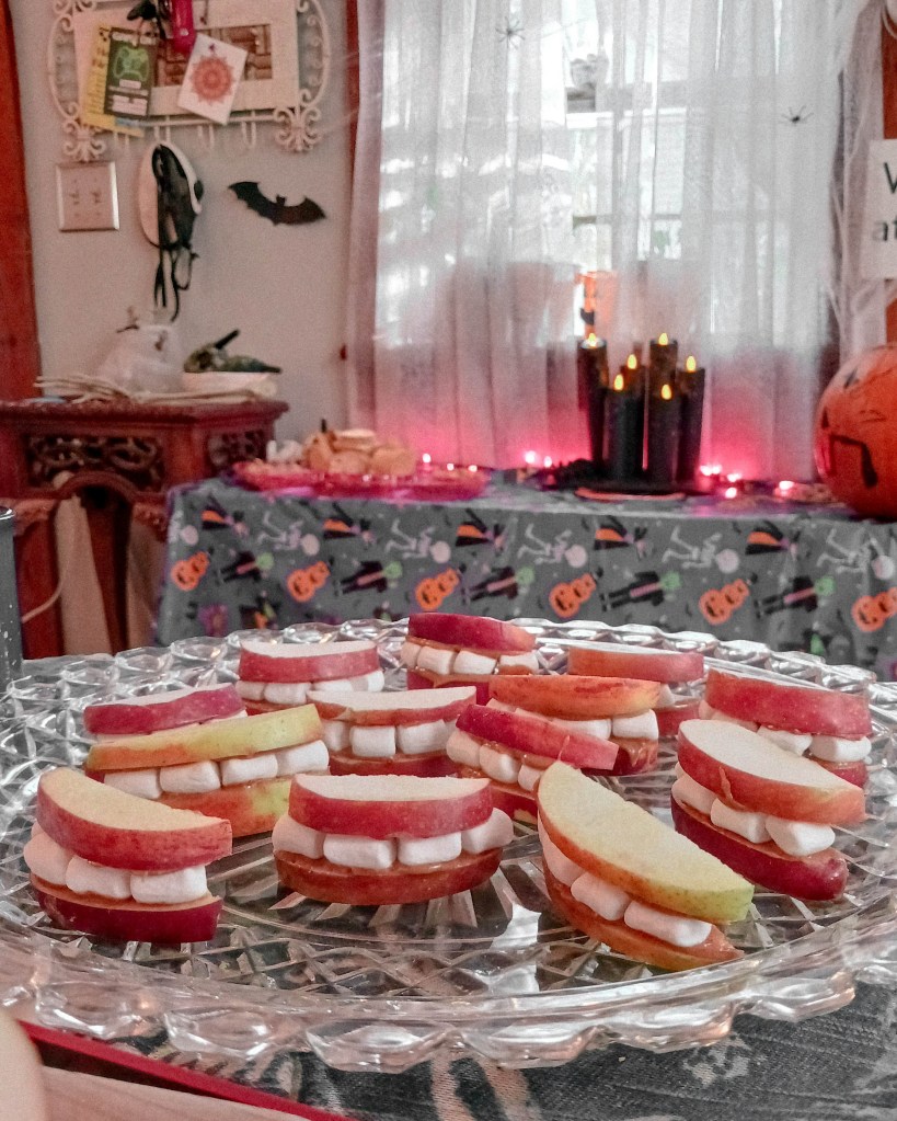 So when I found myself wanting to stay extra busy on Saturday, I headed over to my aunt’s house early to help her and my cousin put all the finishing touches together (our apple + marshmallow teeth may not have been perfect, but they were a hit, so we count it as a success).