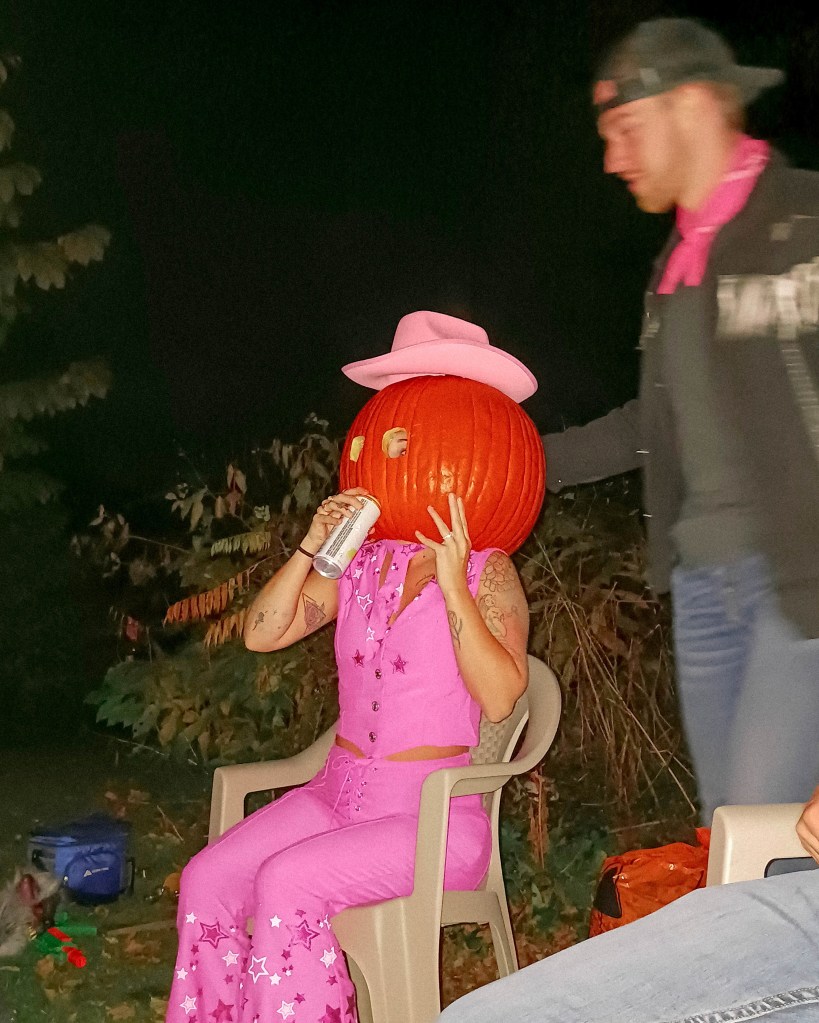 we all tried on Payne’s prize-winning pumpkin head, and the TikTok created accurately portrayed the vibes