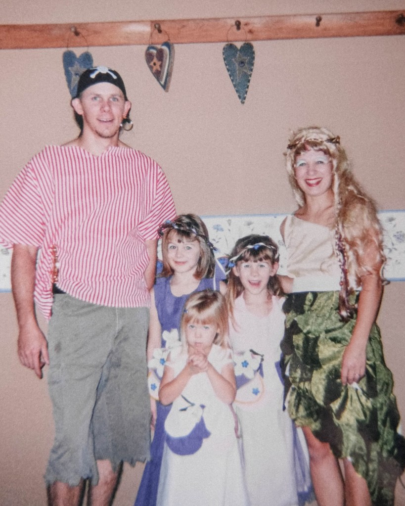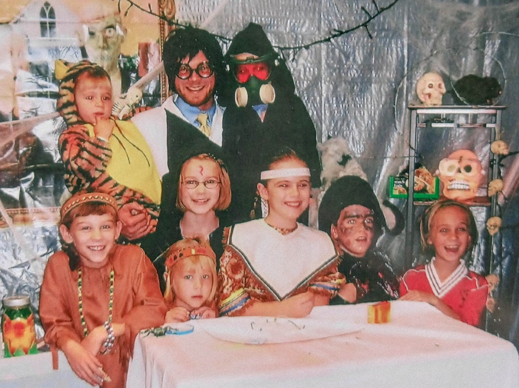 And then, for a handful of years, there weren’t many Halloween parties at all. I had to celebrate the holiday in little ways, like making matching costumes for me and my ferrets and guinea pigs, and carving pumpkins with my sisters.