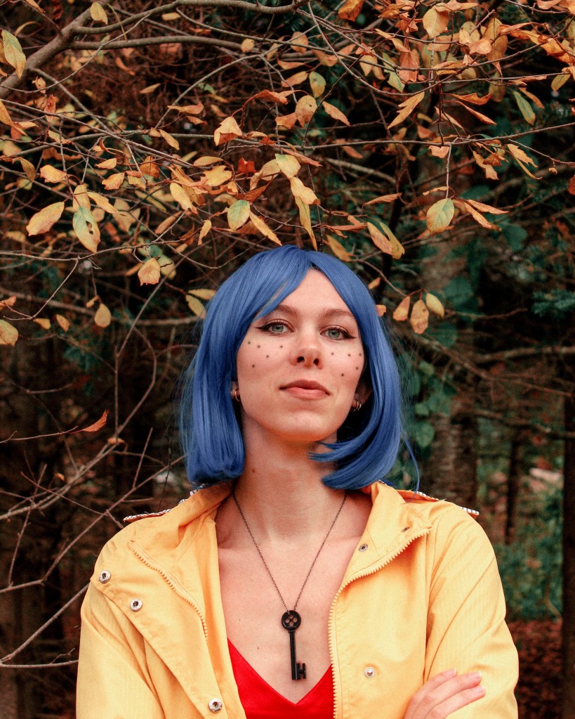 You can never trust me when I say I’m not dressing up, because no matter what, I’ll always throw something together at the last minute. A week ago I had no idea what to wear, until I watched Coraline for the first time and realized that I had almost the entire costume already in my closet.