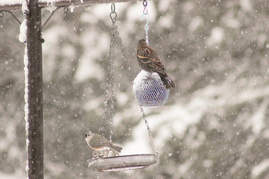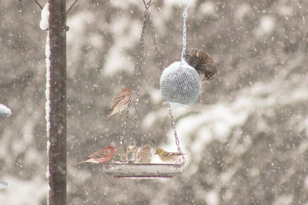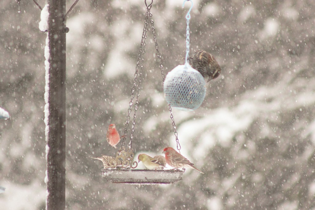 Imagine: a glorious, lazy, sticky snow that lasted all day, and brought a multitude of birds to our feeders…this is what I wait for during every single one of our New England winters.