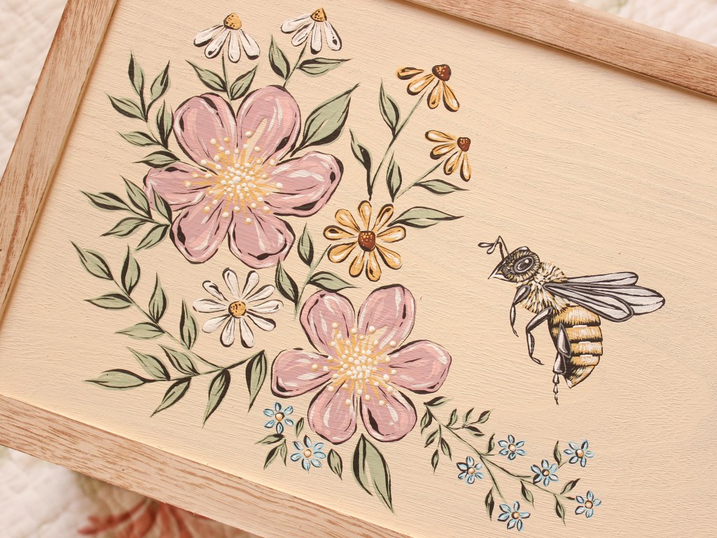 She’s simple, she’s beautiful, she’s got all the spring-time vibes (while there’s snow falling outside!), and it only took two afternoons of crouching on my bedroom floor (and trying to patiently wait for the paint layers to dry so that I didn’t continue to smudge them) to complete her.