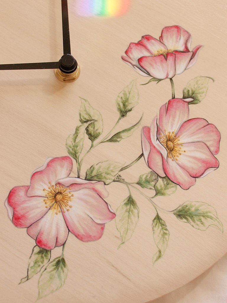 I painted some wild roses on a clock a couple years ago (I still have the clock tucked away in a bin somewhere because I like it too much to give it away), and although they turned out beautifully, the pressure of wanting to recreate this exact design on my mirror was too heavy…and thus I put off the project for about a year.