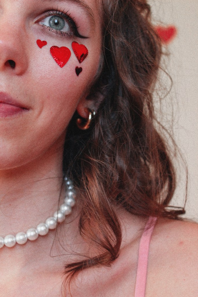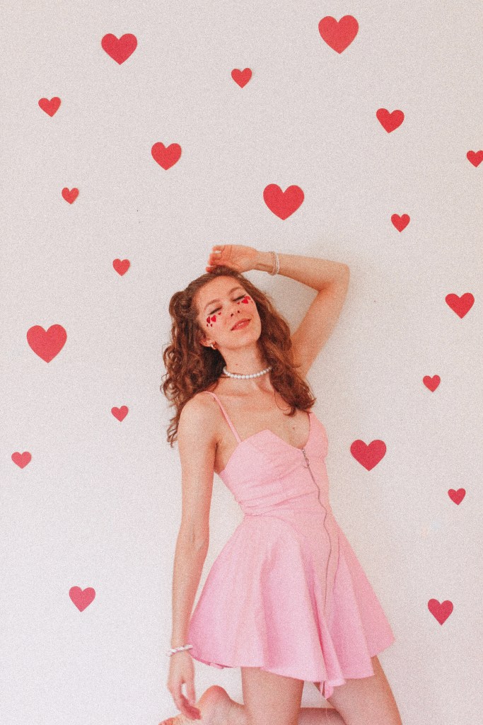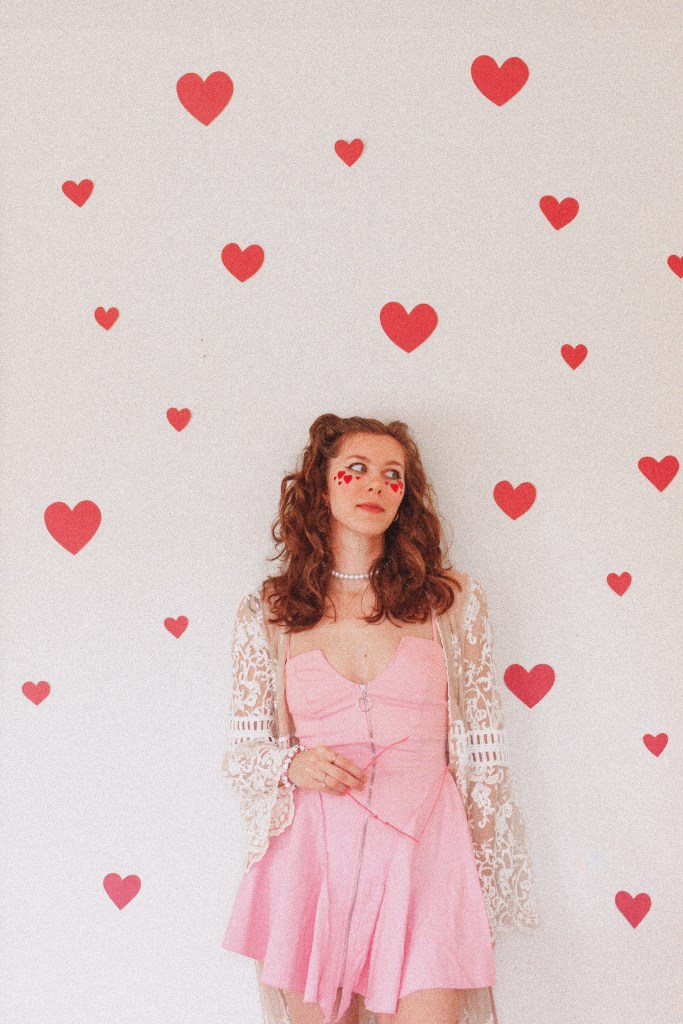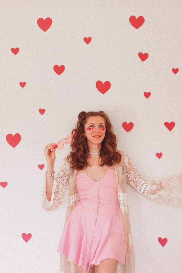 Anyways, I cut out all of these hearts and stuck them to the wall for the Valentine’s shoot, plus I also cut 6+ inches off my hair.