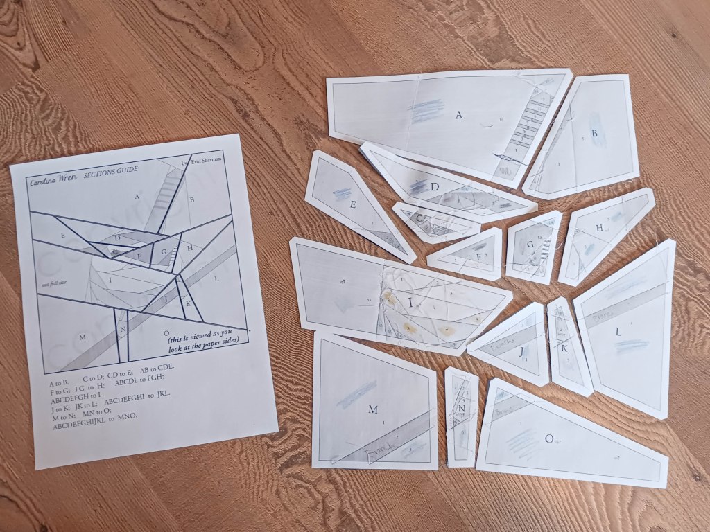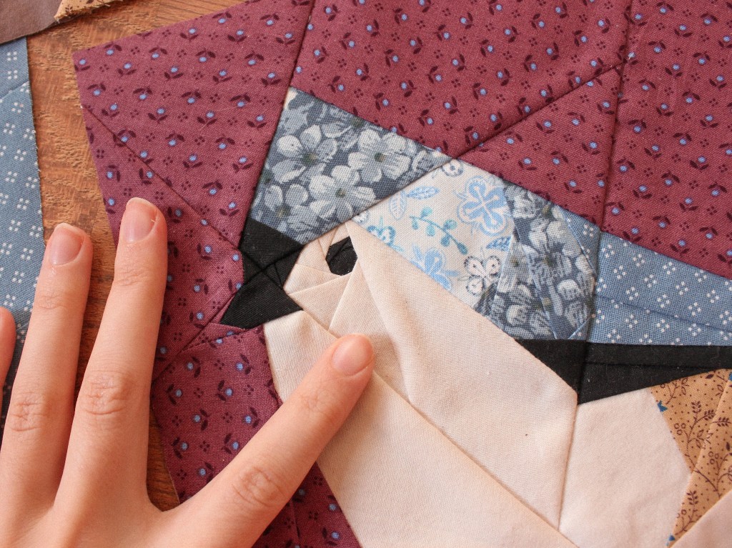 Each one is made out of individual pieces of fabric, sewn in a certain order onto the pattern paper, and once you’re done, the paper is pulled off the backside of it. It’s ingenious, really. I tip my hat to whoever came up with this idea.