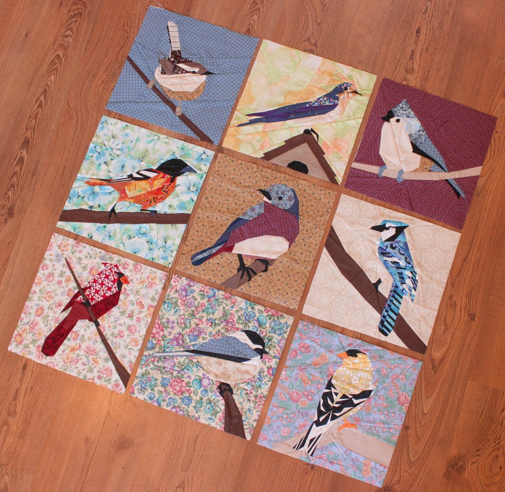 it should be mentioned that each black stripe on the blue jay’s wings and tail are individual pieces of fabric. That bird definitely took me the longest to complete, and I’m not sure I’d want to make a repeat of it right now!