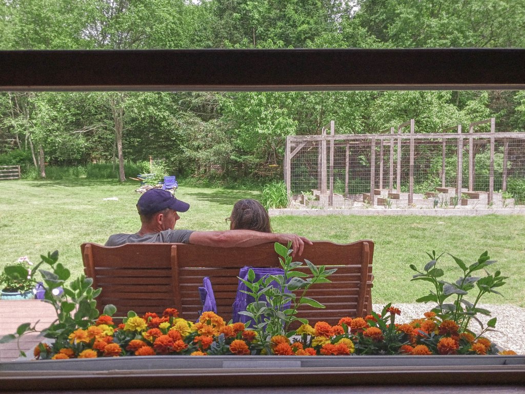 the back garden is being used for vegetables and herbs this year, and the garden with raised beds in the backyard is being used for zinnia, calendula, and pole beans