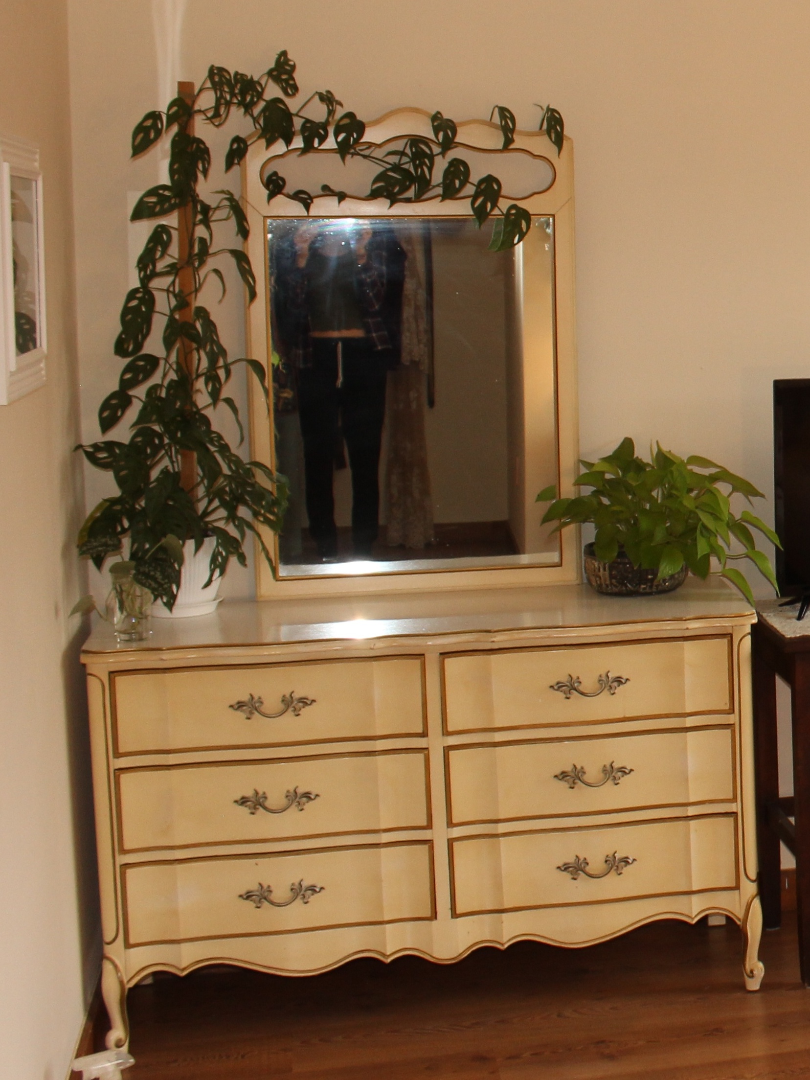 perhaps the best and biggest change was painting this vintage dresser. It took three days to complete the heavily-detailed piece, but it was definitely worth it in the end