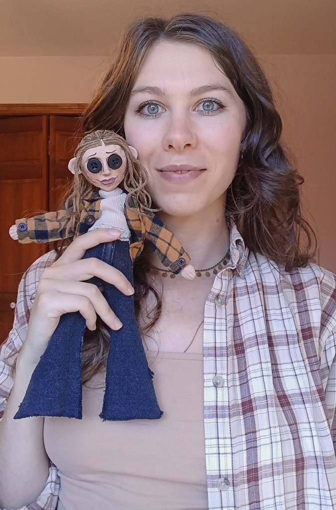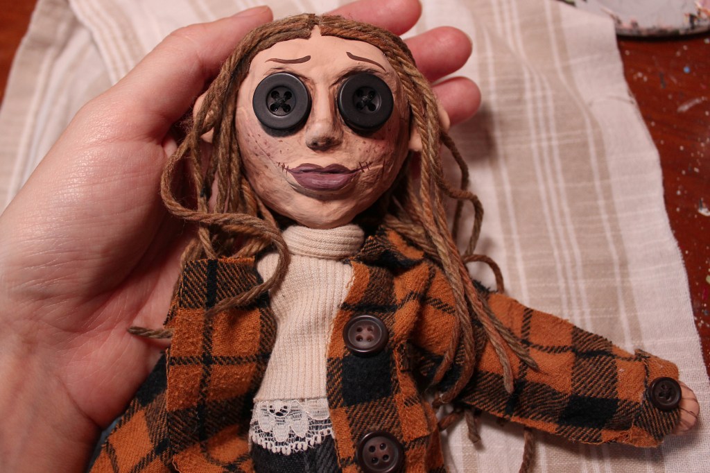 And, unrelated to the pillows, but still in the spirit of Halloween, please appreciate my little custom Coraline doll that I created.