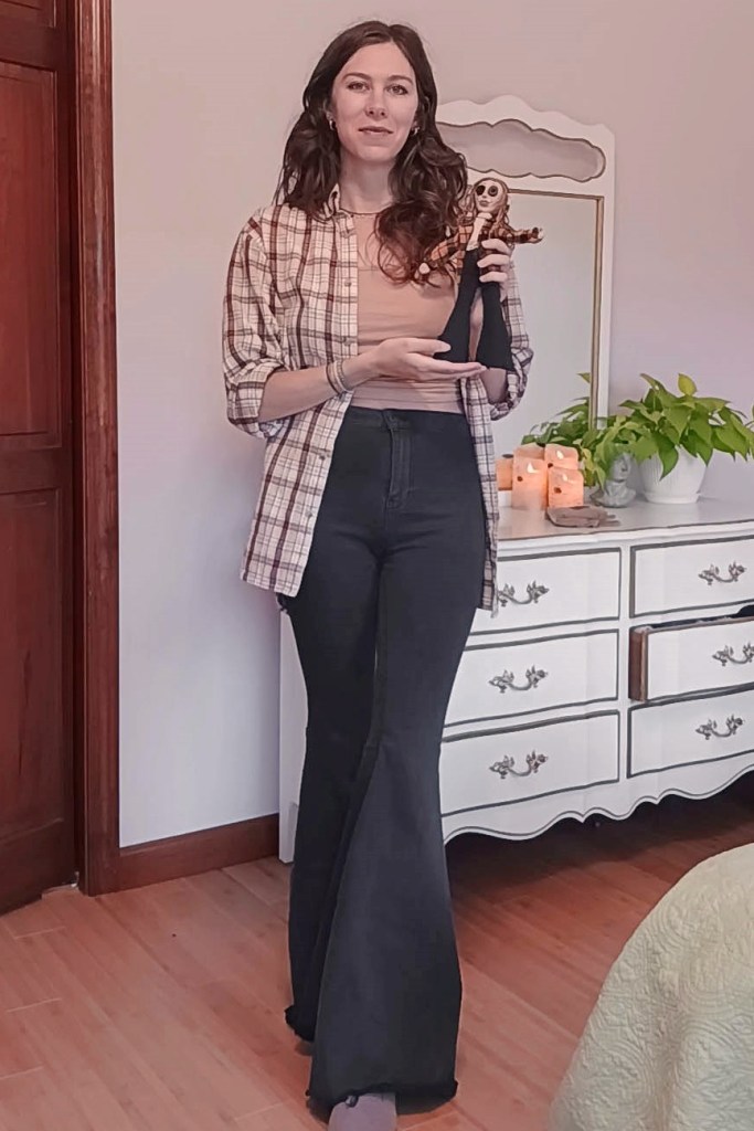 Her oversized flannel even has real pockets on it.