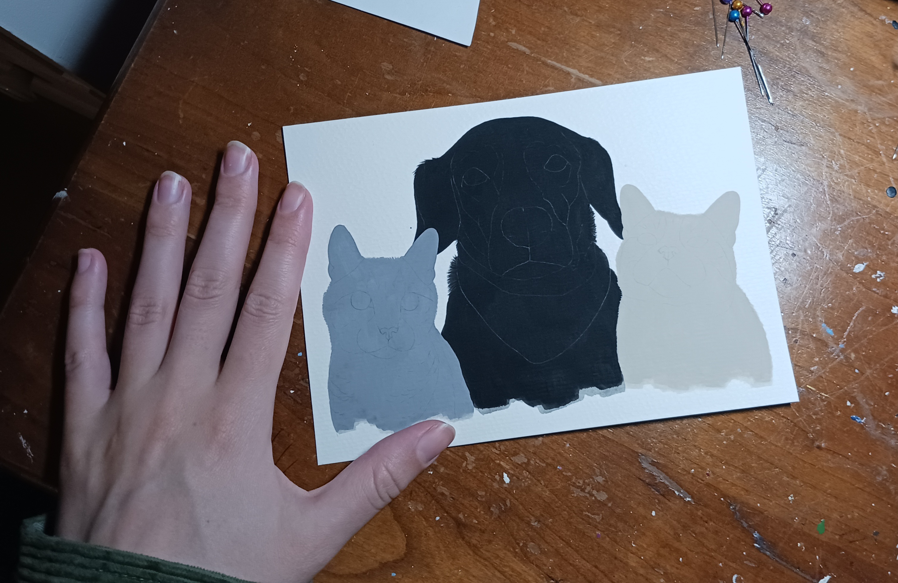 a very special 5×7 triple-pet portrait; options like this aren’t every-day items in my shop, but I love to take people’s special requests when they have doable visions for a portrait!