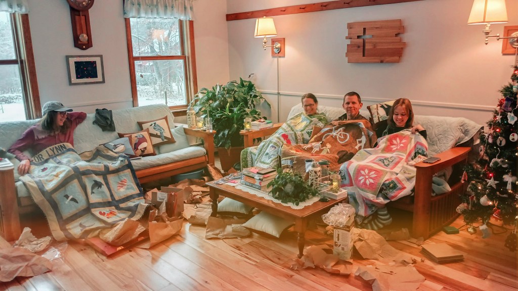 I started making quilts for the fam in…June, I think? I thought that if I started early I’d have them done early, but instead of that happening I just leisurely worked on them throughout the year and got them done on time.