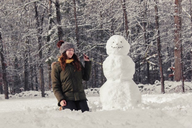 Of course it was very heavy, wet snow which resulted in us losing power for a few hours, so I went outside and built a little snowman while we were left in the dark. He had a face on both sides: one for us and one for everyone driving by. The faces didn’t end up lasting long (the eyes very quickly started to melt out), but the snowman [incredibly] lasted for days. He defied all logic — and gravity — by bending completely over, while never losing his head. By the time he melted, his head was almost touching the ground, while still remaining firmly attached to his body.