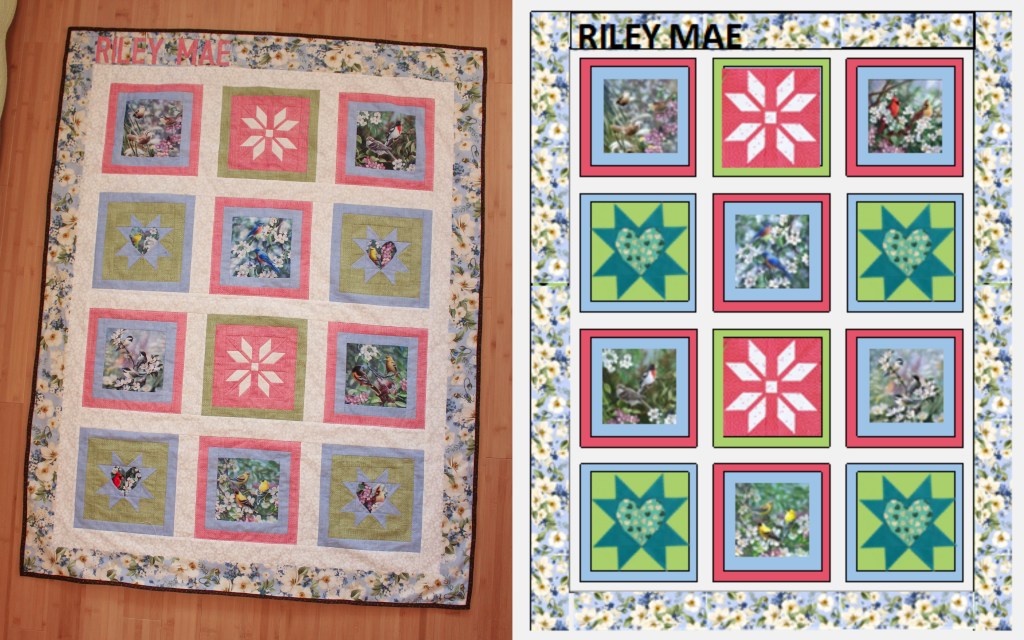 Each square (aside from the bird squares on Riley Mae’s) were created with individual FPP patterns bought from an assortment of Etsy shops.