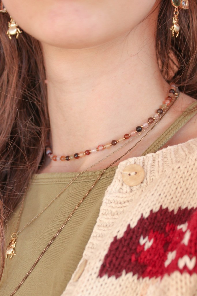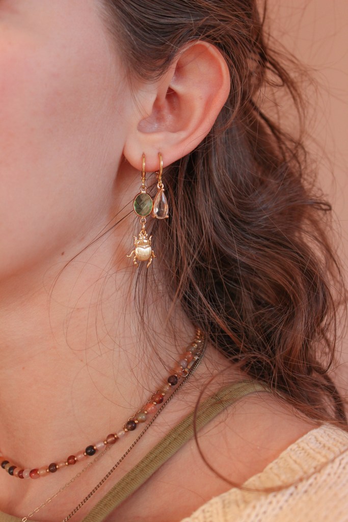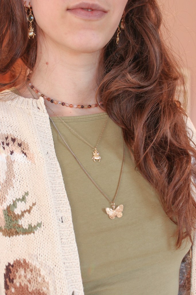 I was recently doing my daily scroll on Pinterest and came across an adorable gold beetle necklace, but after I saw the price I decided to just do some research of my own and found that I could buy the beetle pendants on Etsy! So not only did I make my own necklace, I also made some matching earrings. I added this butterfly pendant to my collection too. It’s fairly large (in terms of what I usually wear), but the details are very dainty and realistic