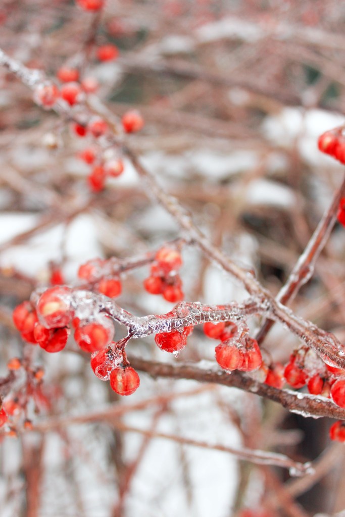 What started out as a beautiful few-inches of snow on Saturday night turned into freezing rain by the wee hours of Sunday morning. It covered every surface in a glittering, crackling coat of ice, which I (of course) had to venture out into once I had fed Mary Todd (safely inside), and eaten breakfast.