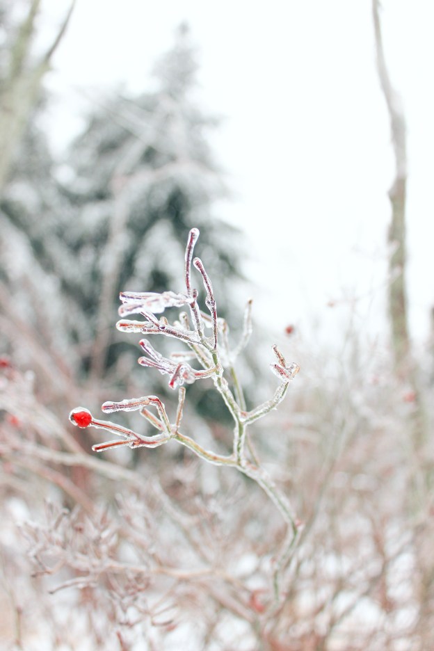 What started out as a beautiful few-inches of snow on Saturday night turned into freezing rain by the wee hours of Sunday morning. It covered every surface in a glittering, crackling coat of ice, which I (of course) had to venture out into once I had fed Mary Todd (safely inside), and eaten breakfast.