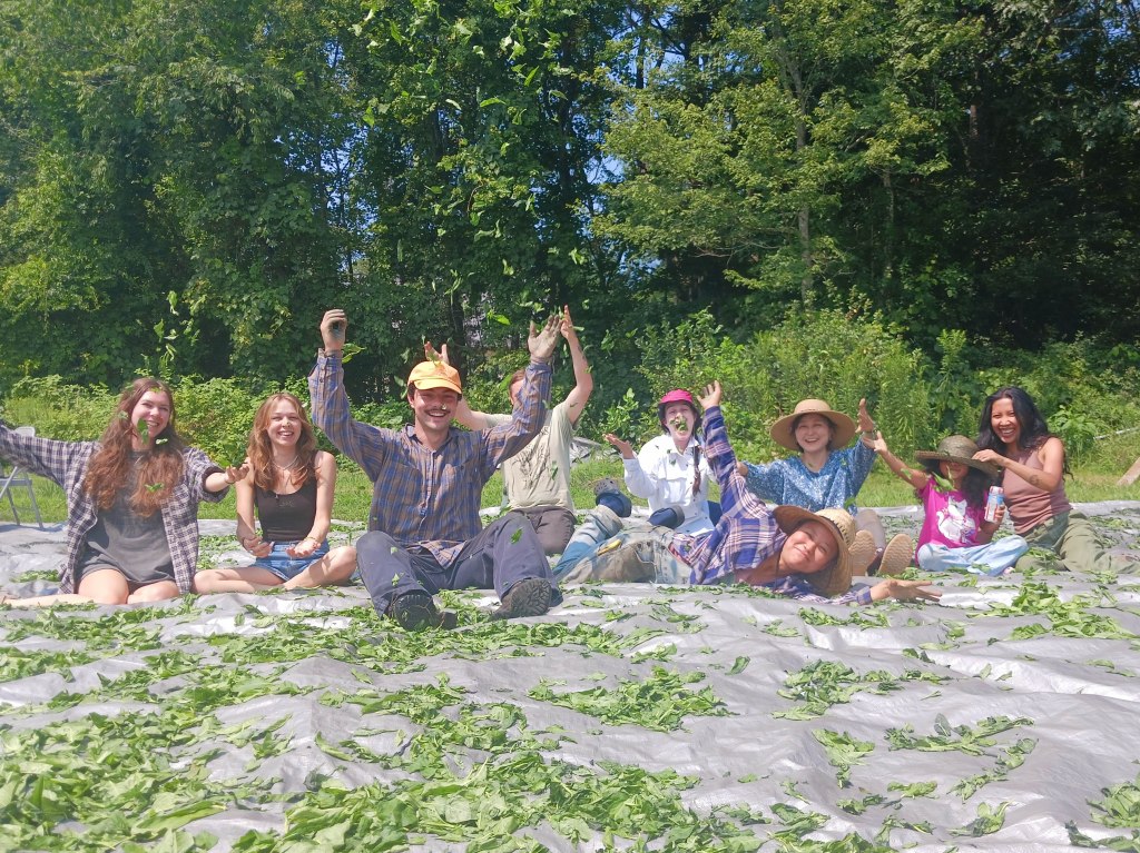 Riley Mae and I spending a Sunday morning harvesting, processing, and drying indigo leaves for dyeing at the farm