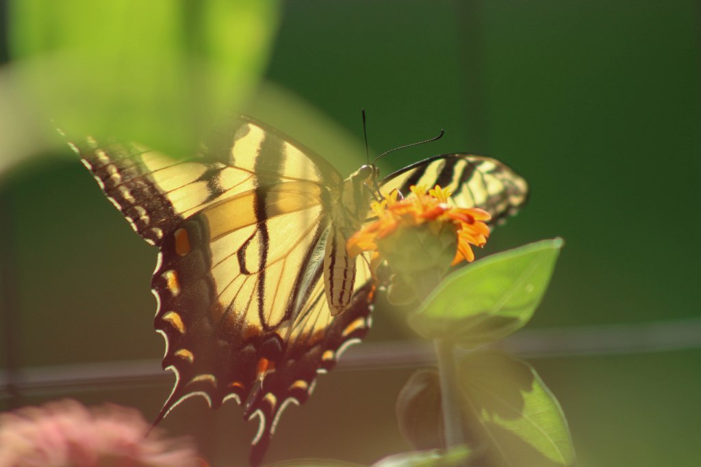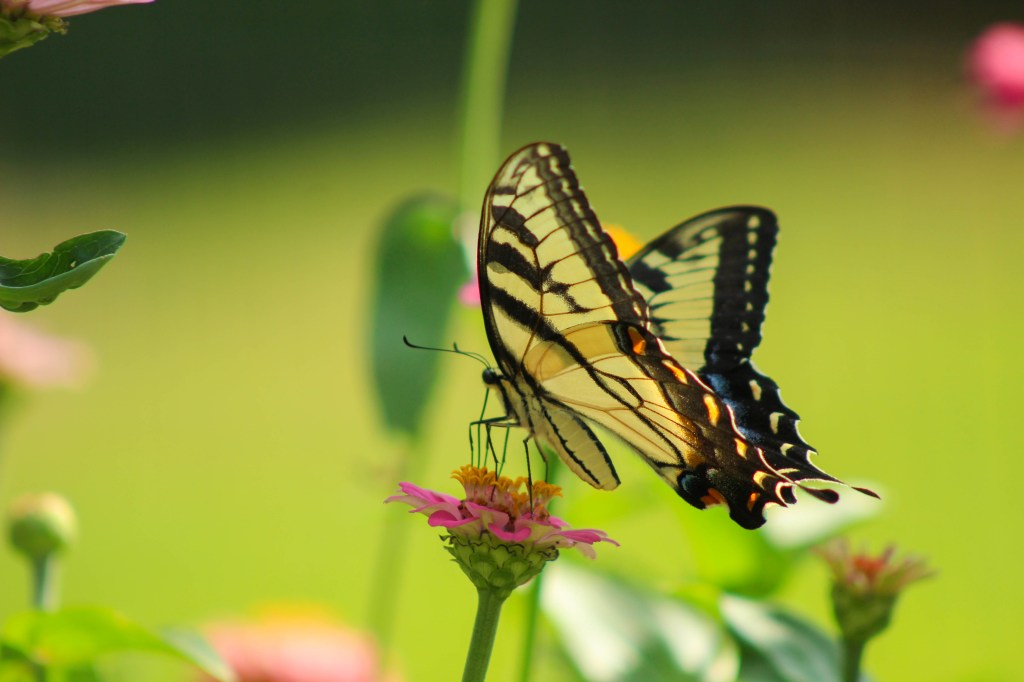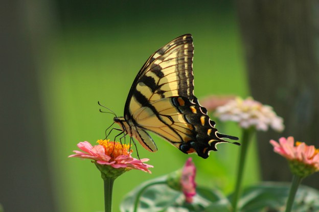a stunning Tiger Swallowtail has been a frequent visitor to my zinnias
