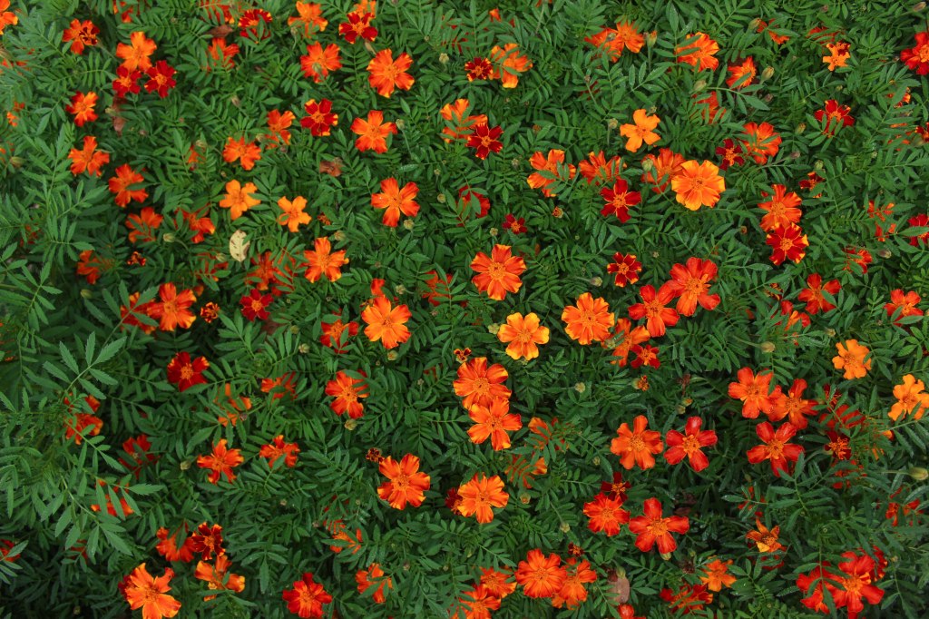 Three beds of zinnias, some random sunflowers (I tossed some in with the zinnias, and a few of them managed to survive the squirrel raid), twelve beds of calendula, and a lush patch of marigolds.