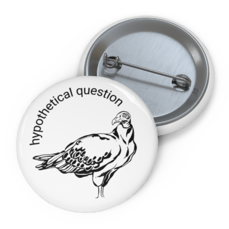 We knew that we’d have a lot of higher-priced items in our shop, so we wanted to make sure we had a couple of smaller items so that everyone could feel included if they couldn’t afford a big purchase. These pins were the perfect thing for that! And in case you’re wondering what this turkey vulture/hypothetical question thing is all about, it’s a reference to this YouTube short that Riley Mae posted in August (featuring me, and a roadkill beaver).