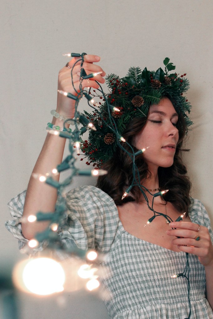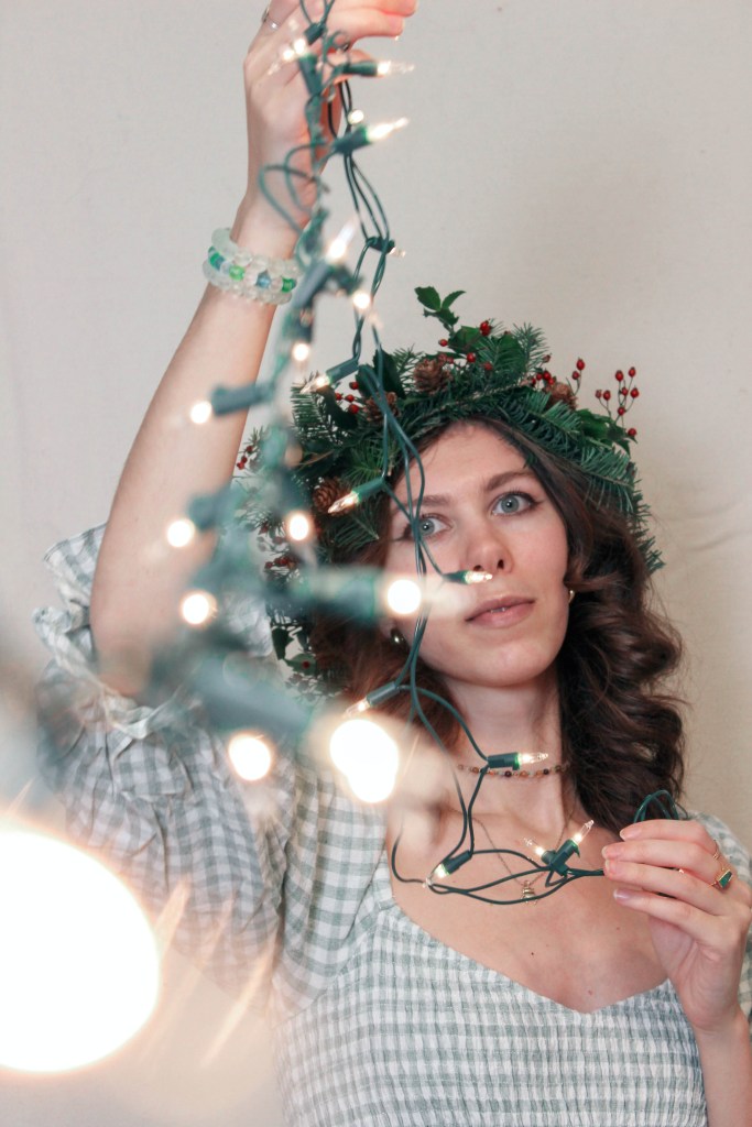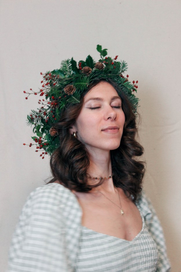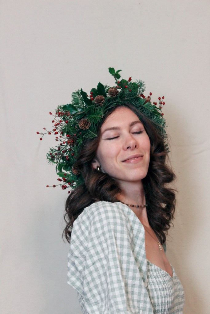 My newest side-quest was making a Christmas wreath crown (the Christmas version of my autumn crown from last year) for some festive photos.